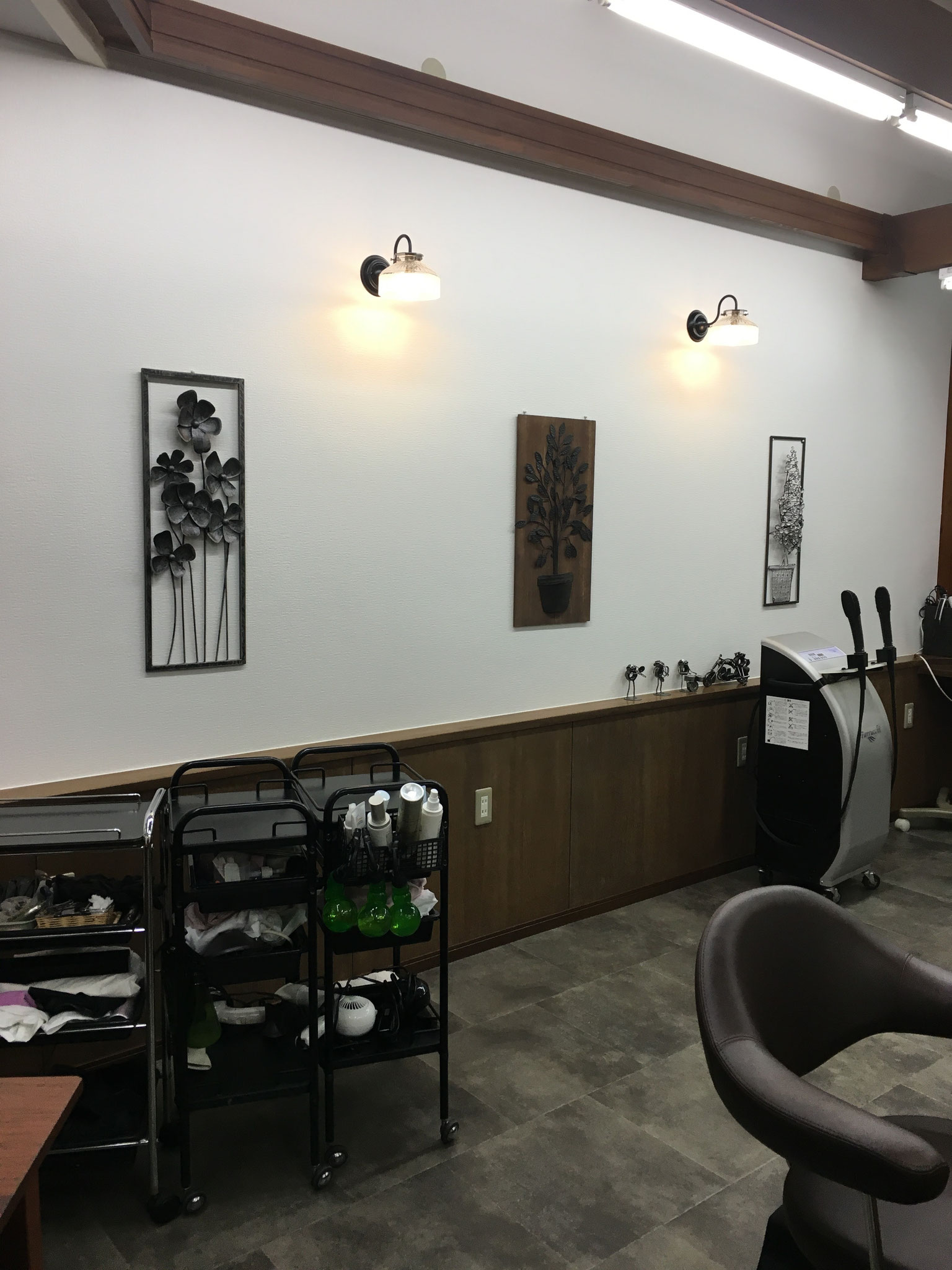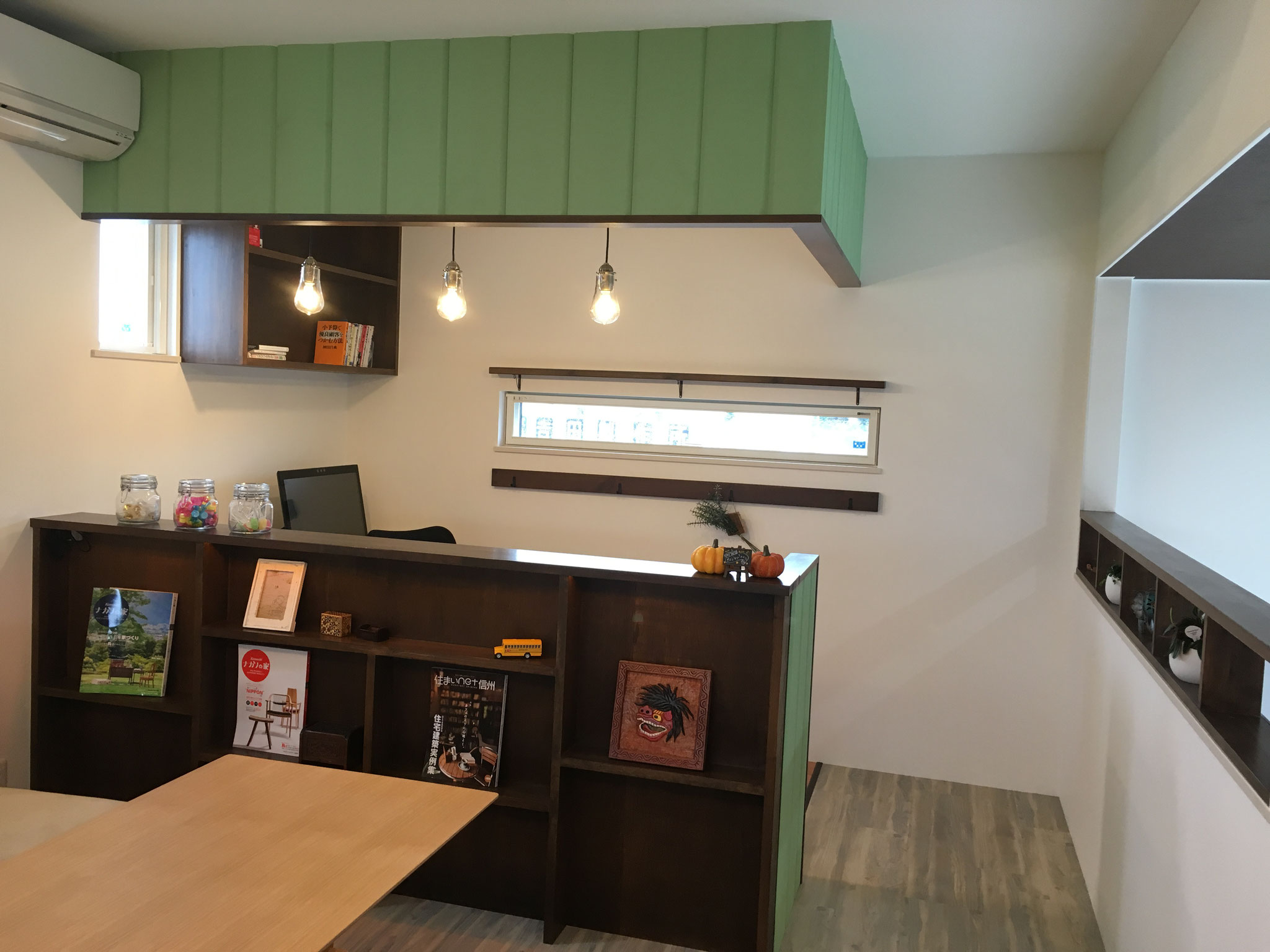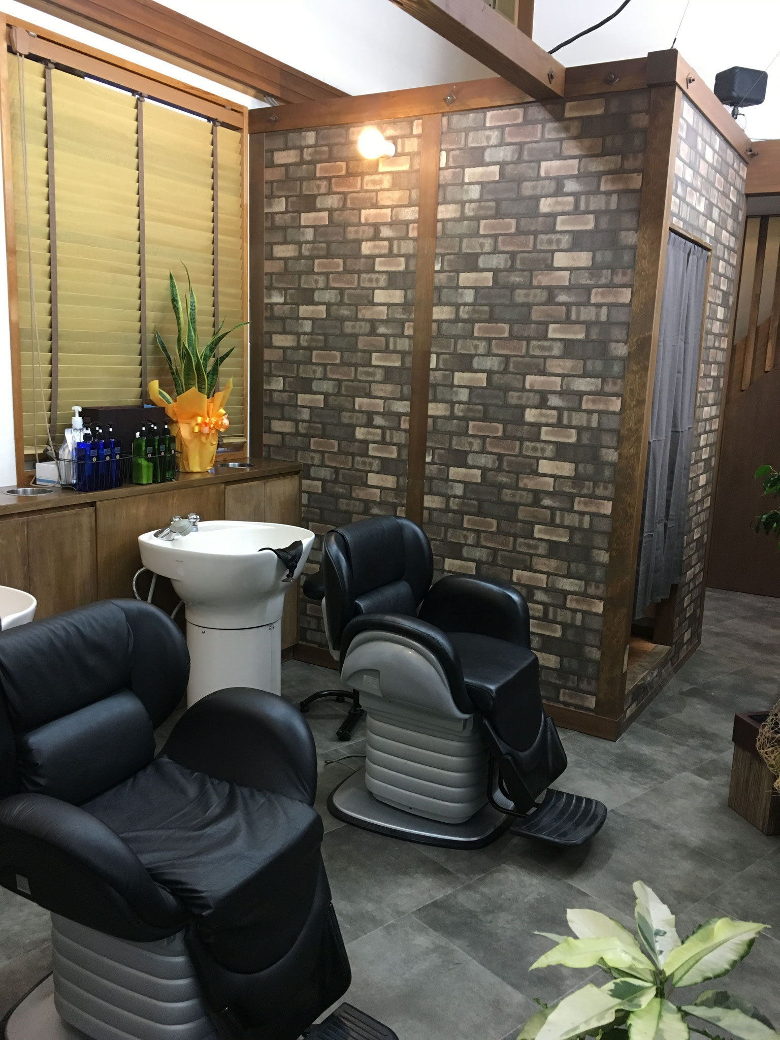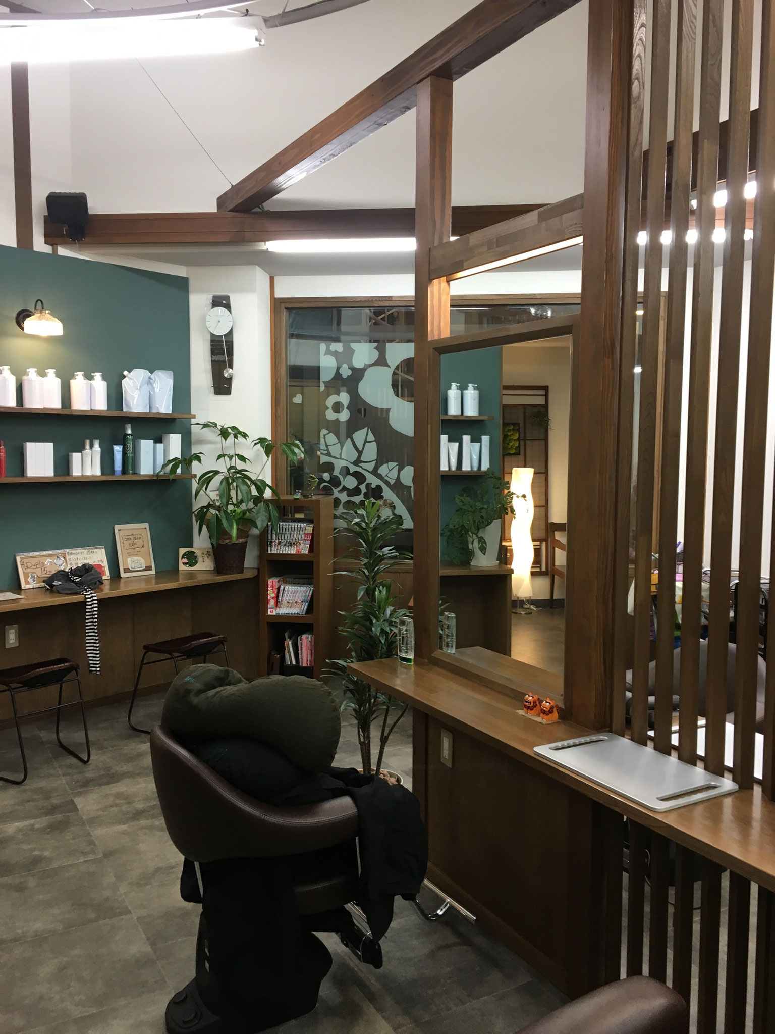 40代女性オーナーから、美容室リニューアルのご依頼。日々のちょっとした使いにくさをとにかくヒアリングして、プランニング。大人の女性がくつろげるインテリアに。既存の木製部分を活かしつつ、新たに中央に木製ルーバー・鏡・カウンターで目隠しパーテーションを作成しました。グリーンとアイアンのインテリア小物をアクセントにしています。オーナーさんが選んでくれた家具ともピッタリです。