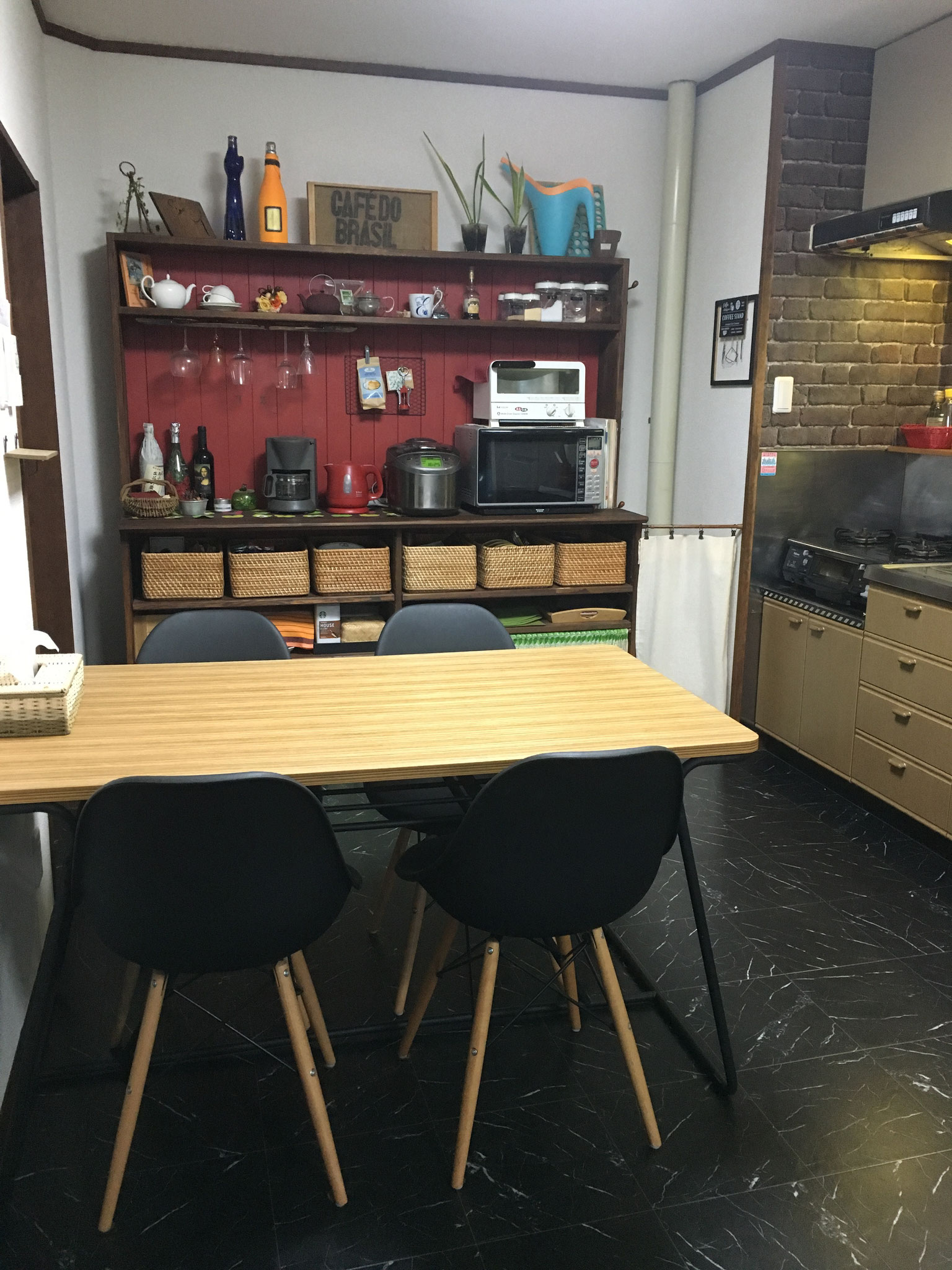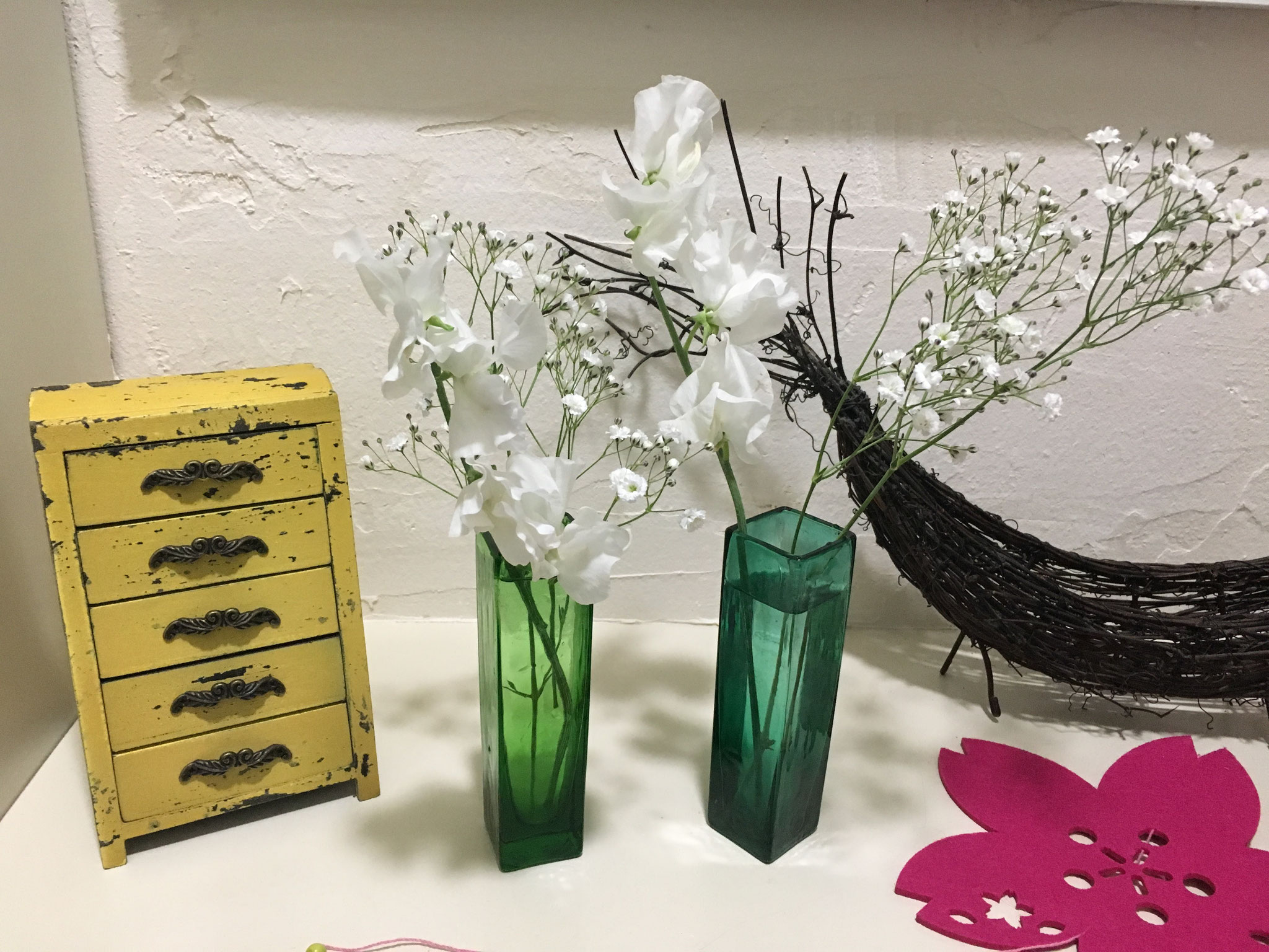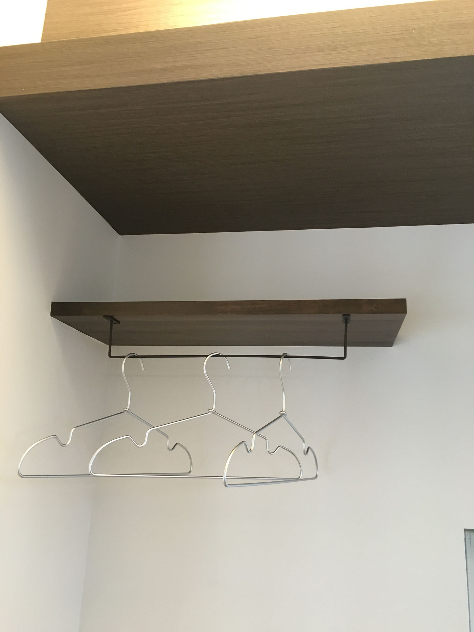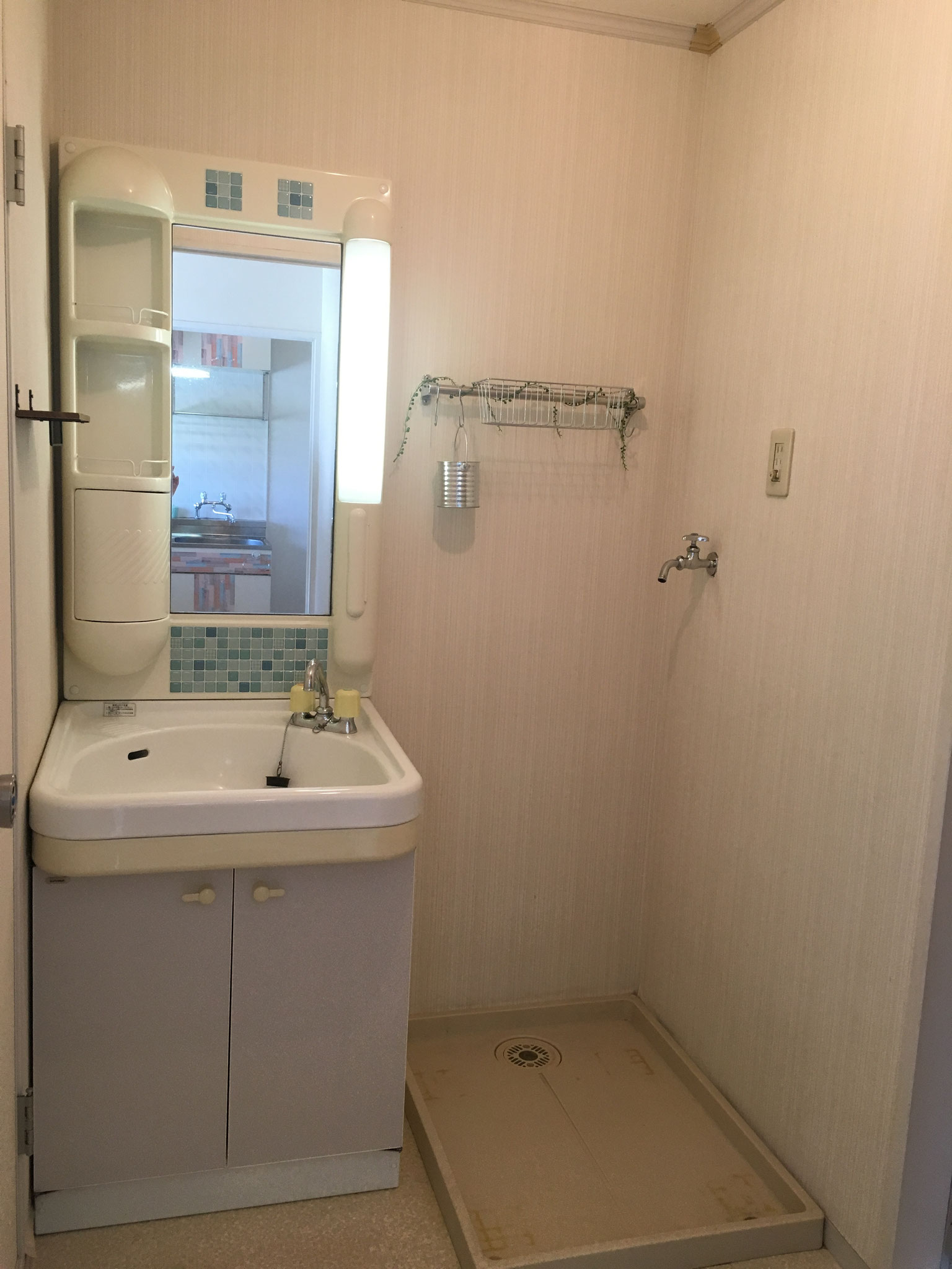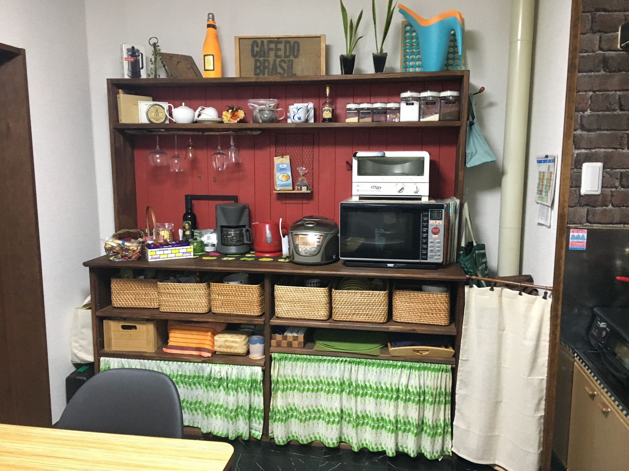 アパートのクロスはアイボリーが多いですよね!!一部の壁のクロスを変えたり、押入れや収納内部のクロスをアクセントカラーにするだけで、楽しい空間に変わります。キッチンのレンジフードのミントグリーンンがなんとも可愛くて、今回のコーディネートのイメージはここから膨らみました。キッチン扉のつまみを変え、一部にテープをはりました。ちょっとしたことで、自分の家を好きになるきっかけになればと思います。