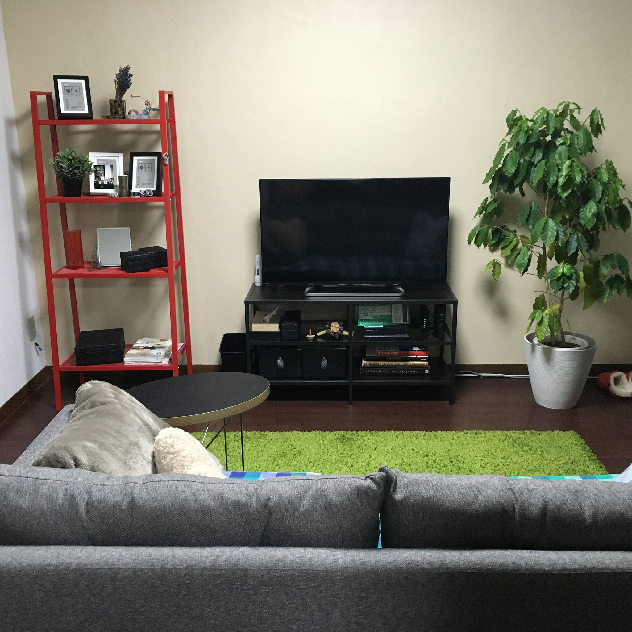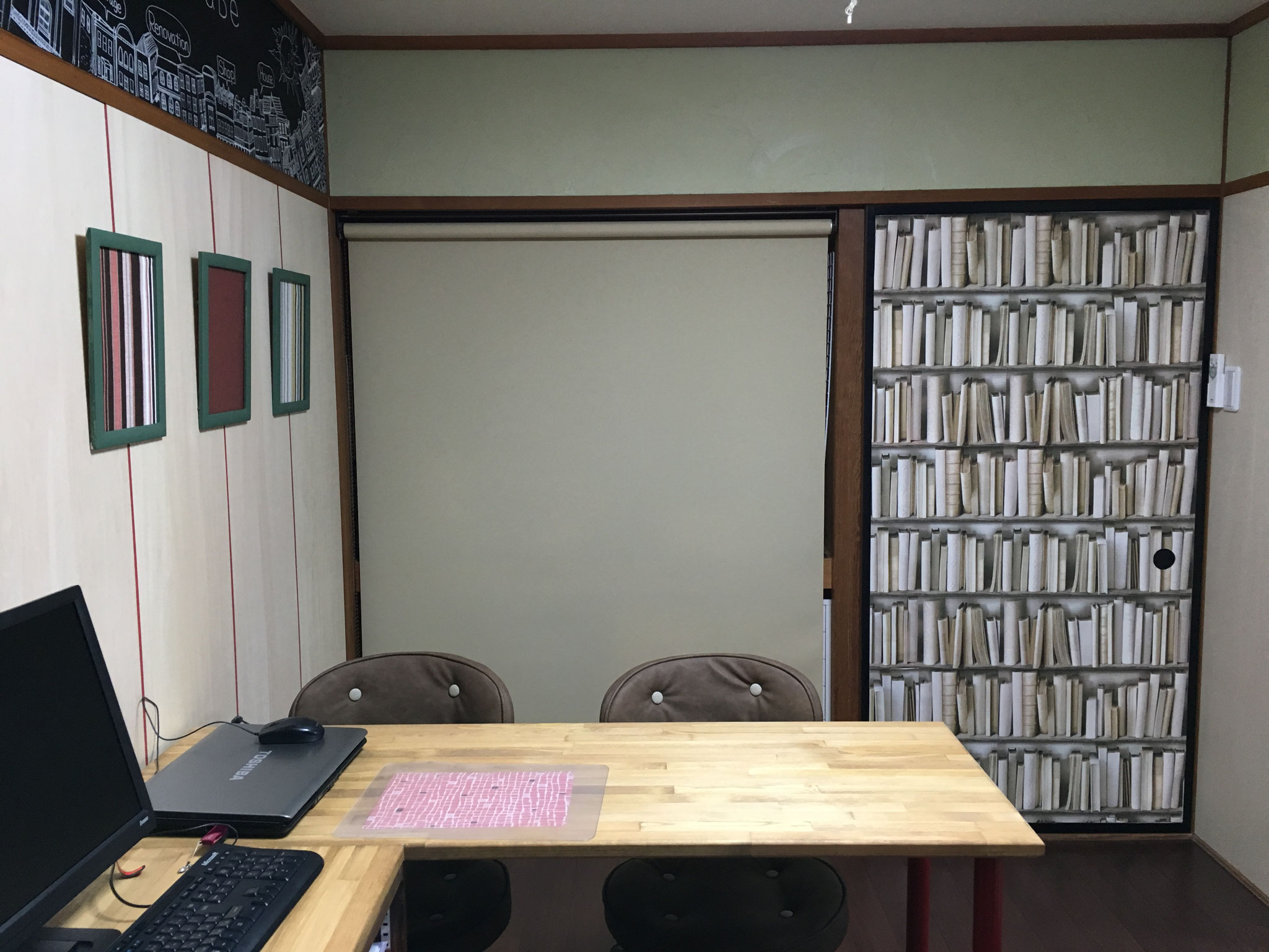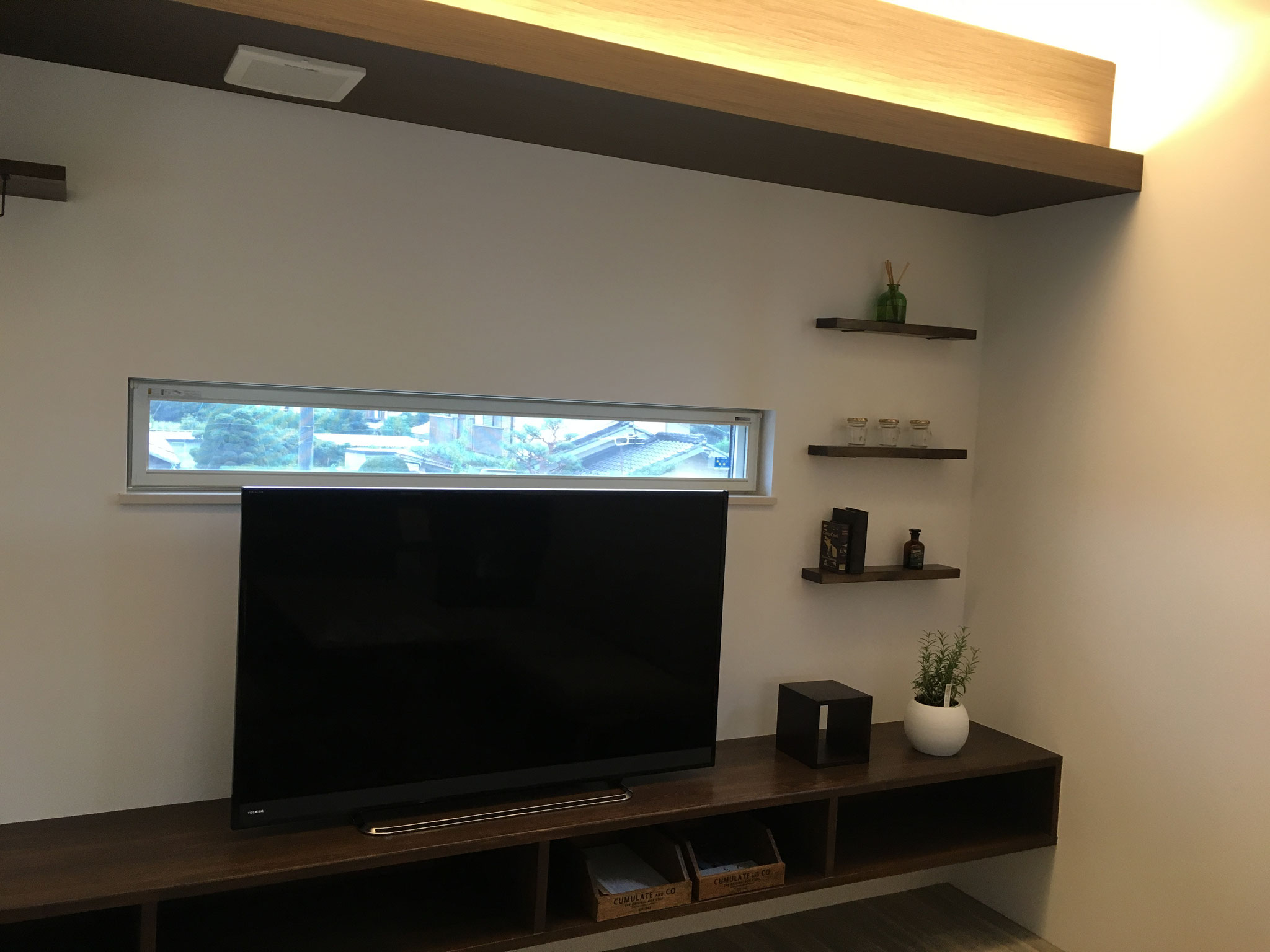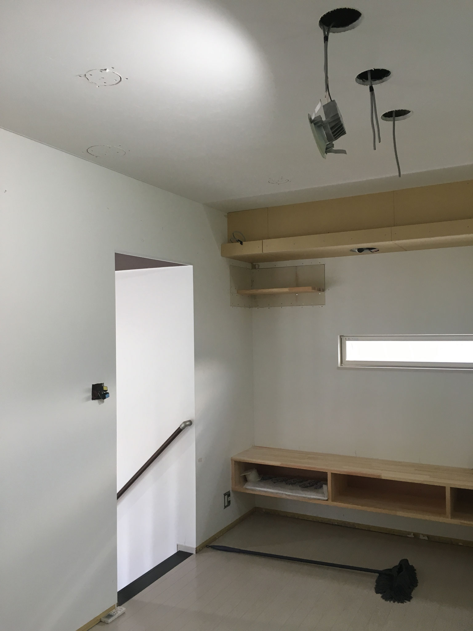 12帖の洋室を、生活がイメージできるような打ち合わせスペースにリノベーションしたいと、株式会社 YUIKEN 社長 油井さんからの依頼。お家のリビングダイニングにいるような雰囲気で打ち合わせでき、かつ、こんな風に造作できますという提案も兼ねています。TVのスペースや書斎も造作してしまえば、あとから家具に悩むこともありません。どんな暮らしがしたいか、とことん話せる空間を提案しました。
