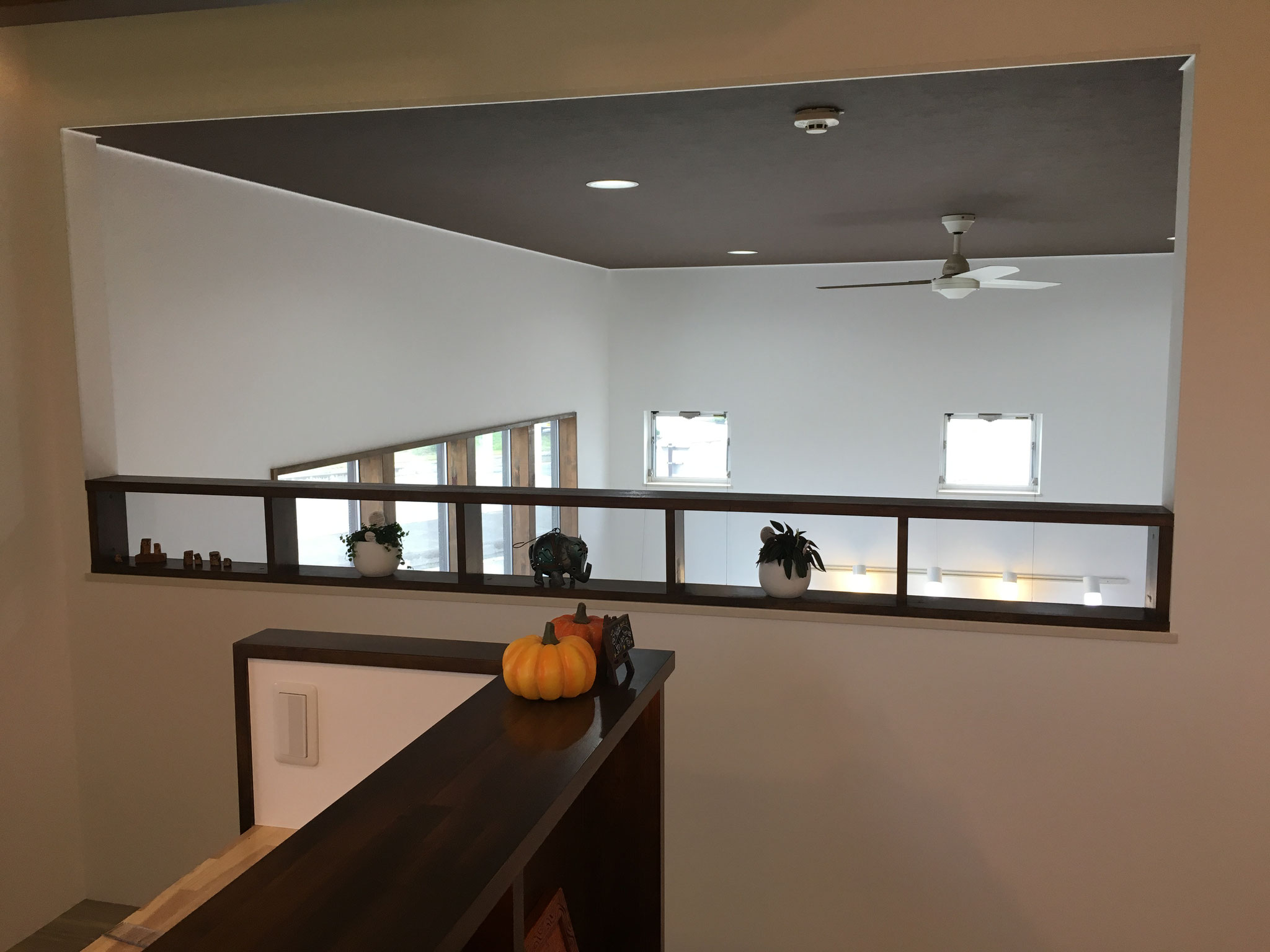 この空間の、ロールスクリーンも提案させて頂きました。空間に溶け込む、モカ色にしました。